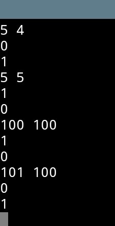 printf("%d <= %d --- %d\n", a, b, a<=b);