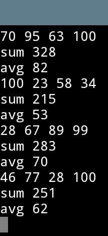 조건 : 변수 4개를 받아서 합계와 평균을 구하기