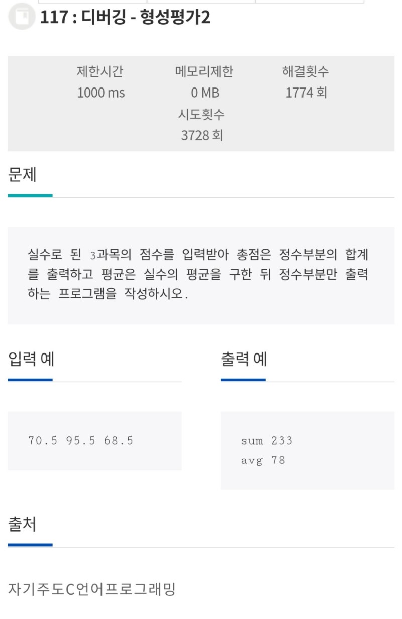 문제 2는 실수의 평균을 먼저 구한 후 소수점 부분을 버림해야한다.