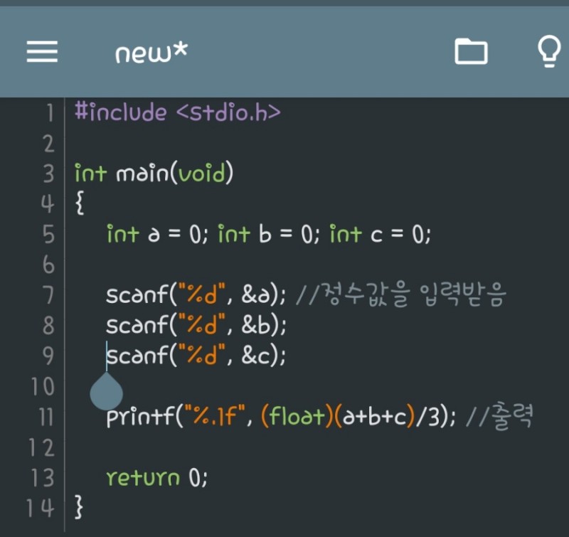 //세 변수값을 더한 걸 (a+b+c) 한꺼번에 실수형으로(float)