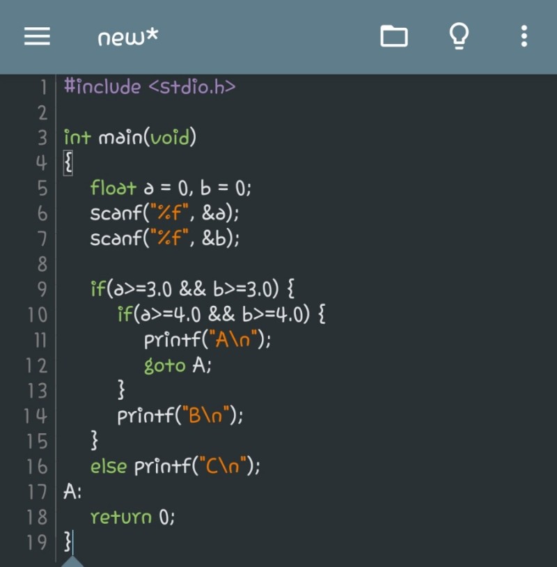 - 9) if(a >= 3.0 && b >= 3.0) {