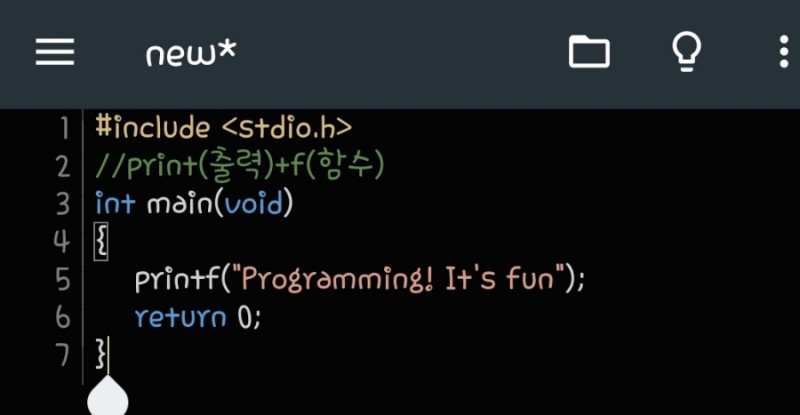 주의 :print가 아닌 printf이다. 정확히 (공백 및 특수문자) Fun programming이라고 적어야 한다.