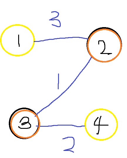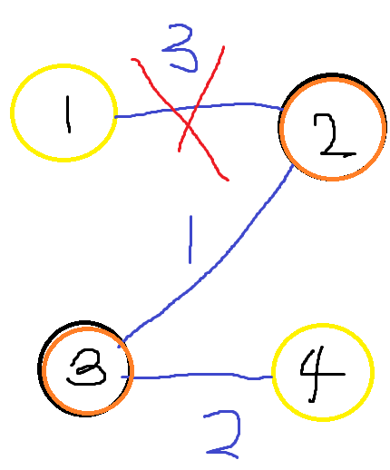 krustal 알고리즘에 의해 2-3을 연결한다 (2, 3은 이제 같은 부분집합에 있다)