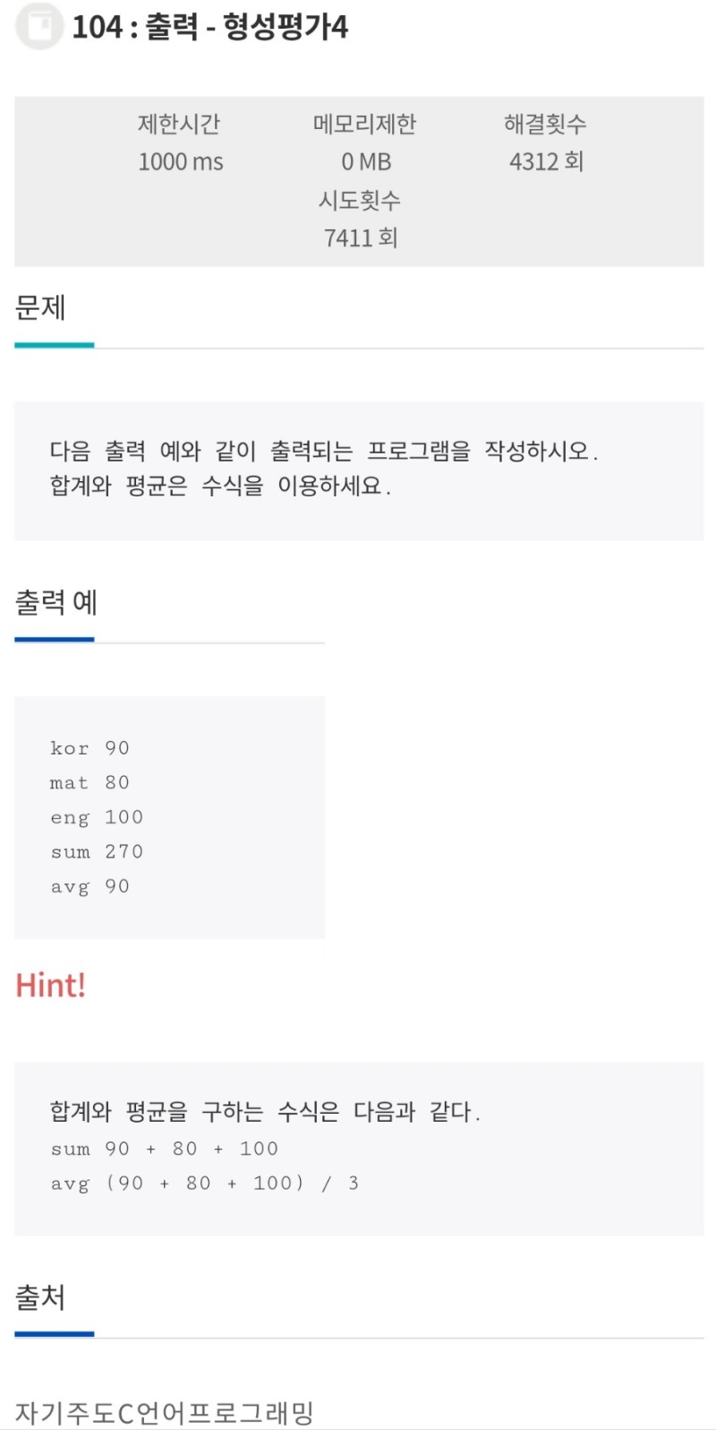 jungol > 문제 > Langauge_Corder > 출력 - 형성평가 1~5