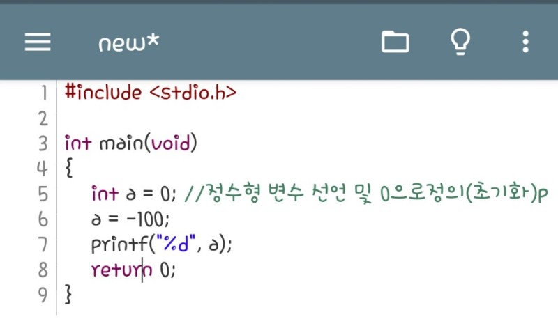 int a = 0;으로 선언과 동시에 초기화를 했다.
