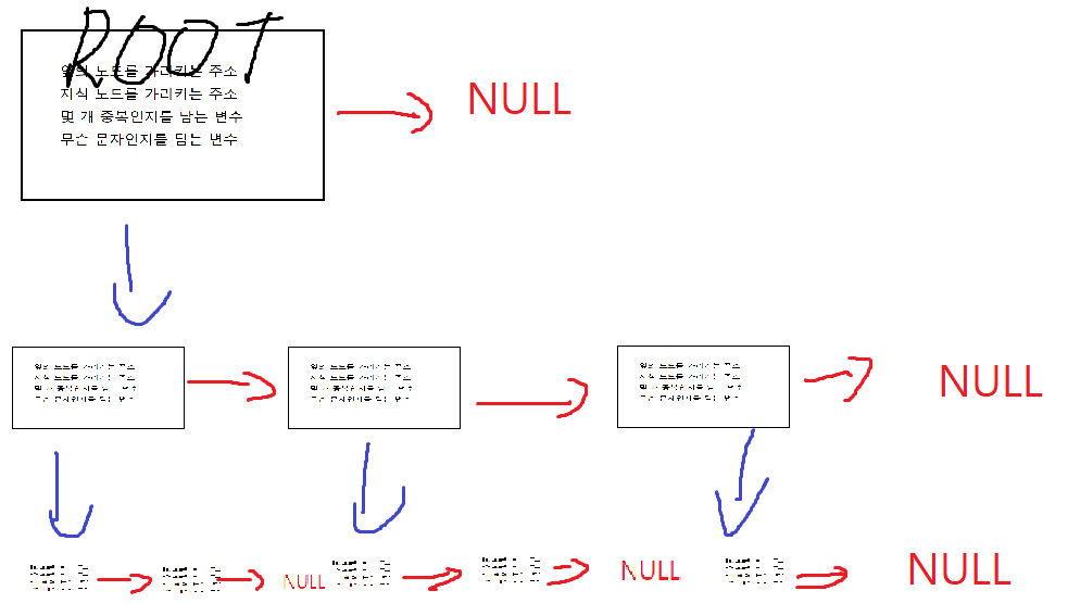 root->next = root->child = NULL; //주소를 다루는 값들을 초기화한다. (안하면 어떤 오류가 발생할지 모른다!)